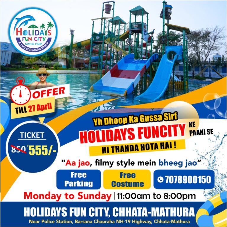 Escape the ordinary and dive into a world full of fun, thrill, and unforgettable memories at Holidays Fun City, Mathura’s most exciting waterpark. Whether you're planning a family outing, a friends' hangout, or a weekend getaway, we have everything to make your day super cool and refreshing!